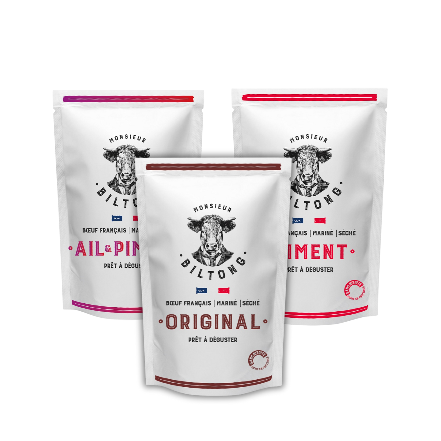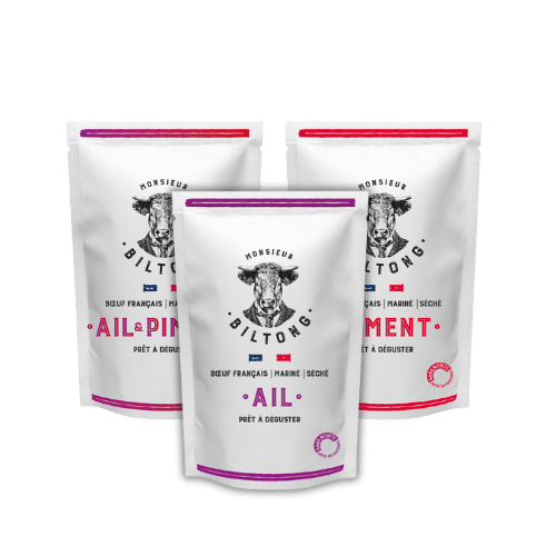 A dried beef with various flavors that will accompany your aperitifs, dishes and salads. To eat without moderation and what's more it's 100% French . A real delight to share .